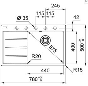 Вырез для монтажа вровень 785 х 503 х 7, R17