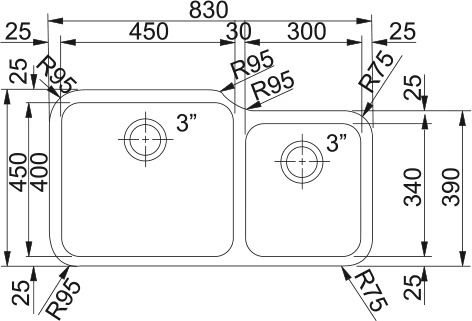 Диаметр слива 3 ½” (90 мм)