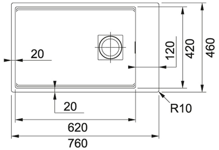 Размер монтажного отверстия под мойку (ШхГ)