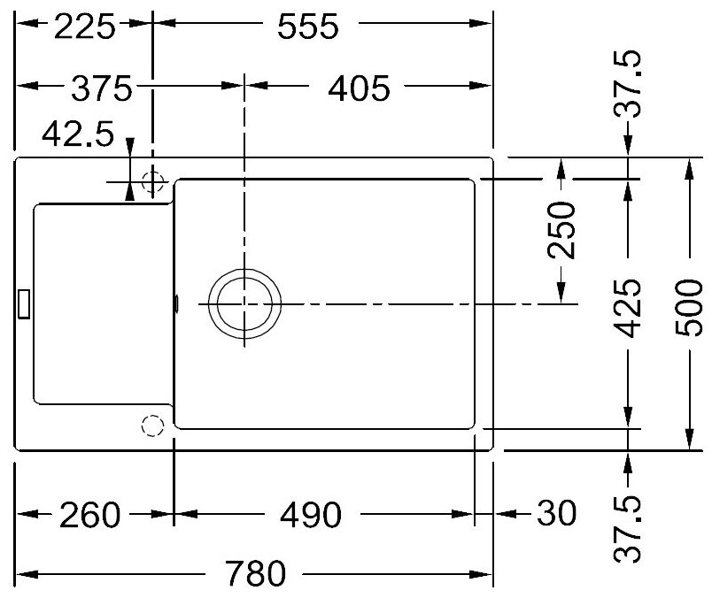 Размер монтажного отверстия под мойку (ШхГ)