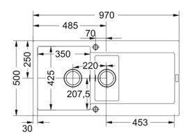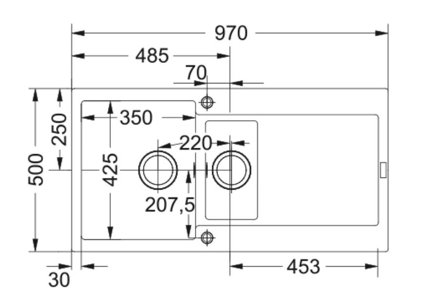 Размер мойки 970 х 500 мм