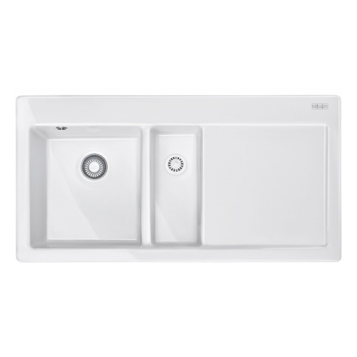 Дополнительная информация керамические мойки на кухне демонстрируют свои лучшие качества. Это чрезвычайно прочный запатентованный материал Fraceram из натуральных материалов и экологически безопасен. Полка с уклоном гарантировано обеспечивает слив воды в чашу. Просторная, глубокая чаша для комфортной работы на кухне. Вентиль-автомат с запатентованной кнопкой управления Easy-Click из нержавеющей стали