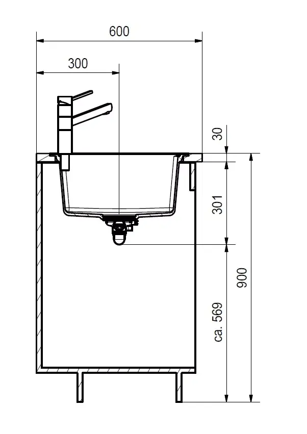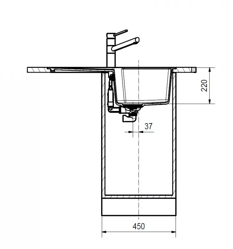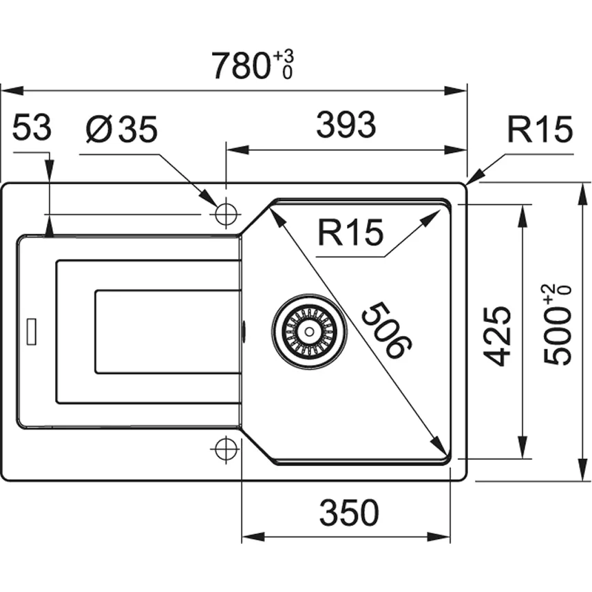 Размер чаши 350 x 425 x 220 мм, R 15 мм