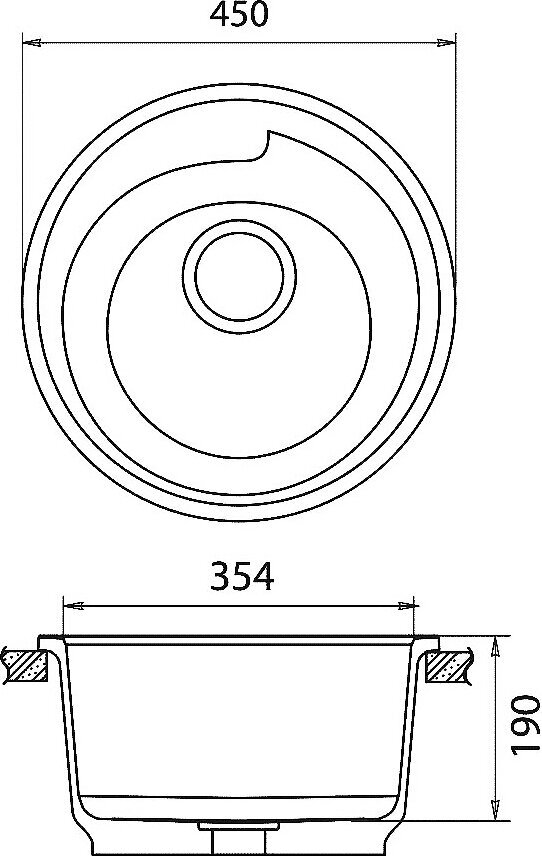 Размеры мойки: D 450 мм