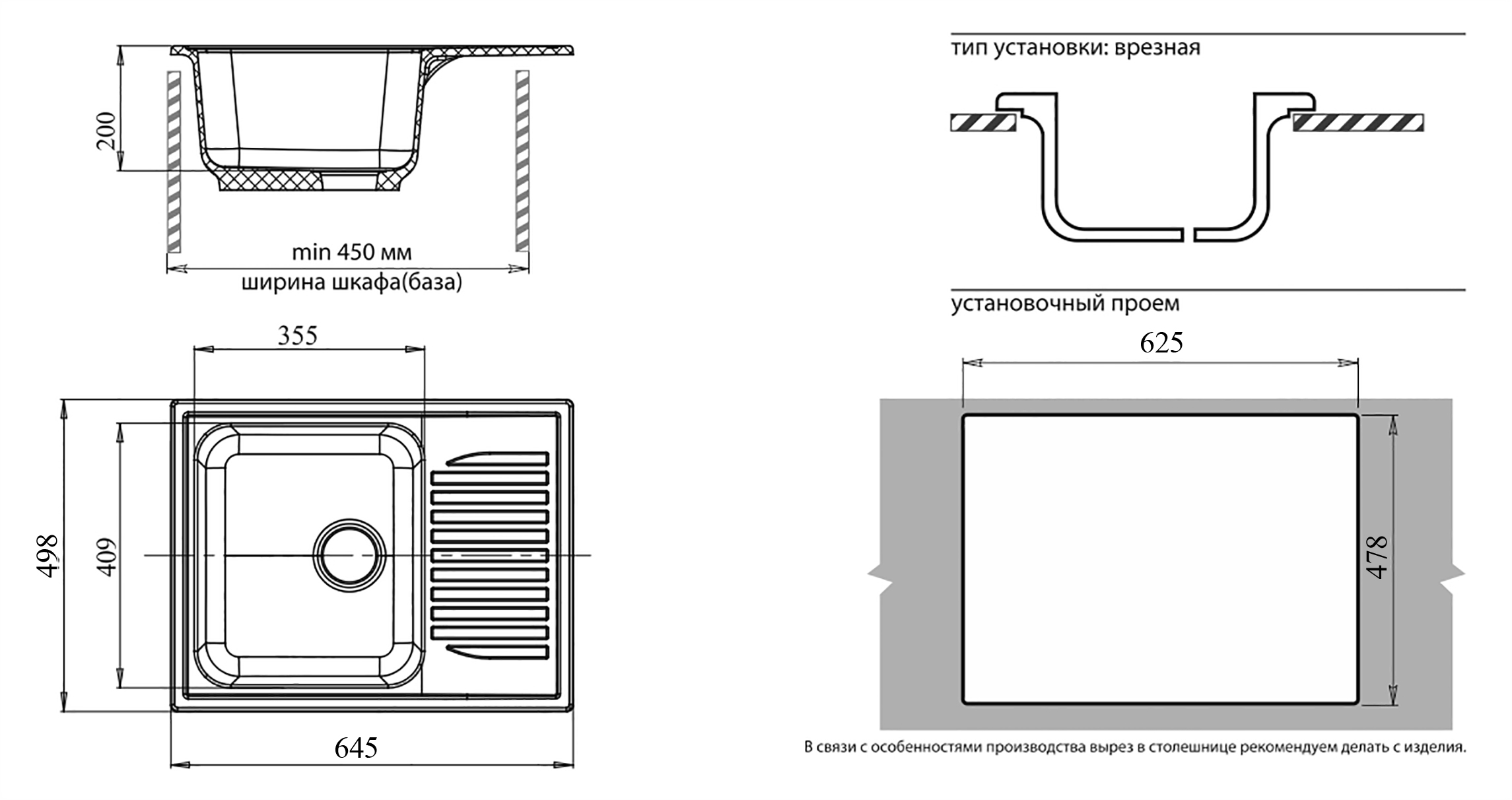 Мойка GranFest Standart GF-S-645 L мрамор, серый