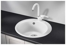 Универсальный дизайн и вместительность мойки GR-4801 от российского производителя Granula оценят владельцы небольших кухонь. Круглая чаша из искусственного гранита имеет непористую поверхность, устойчивую к воздействию пищевых красителей и загрязнениям. Даже после длительной эксплуатации не желтеет и не распространяет неприятный запах. Термостойкая и бесшумная. Оснащена всем необходимым для безопасного использования и комплектуется надежным сифоном для подключения к канализационной системе. Смеситель легко устанавливается в готовое отверстие.