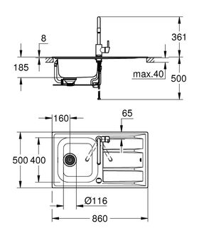 Требуемый размер отверстия в столешнице для установки мойки: 840 x 480 мм.