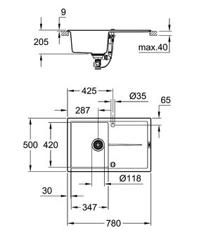 опция: автоматический сливной клапан с нажимным механизмом (40 986 SD0), приобретается отдельно
