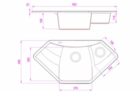 Марка / Бренд АлмазМрамор Россия Высота. мм 200 Глубина. мм 980 Матеpиал изделия Каменная Минимальный размер тумбы 1000 мм Монтаж изделия Встраиваемый сверху Размер чаши 395 х 360 х 200 мм, 190 х 160 х 130мм Расположение крыла Слева Тип мойки Врезная Формa Многоугольная Ширина. мм 500