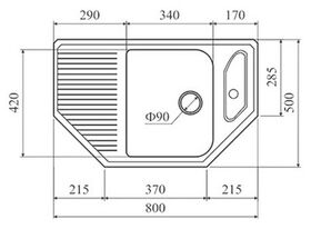 Размеры мойки (ДхШ)