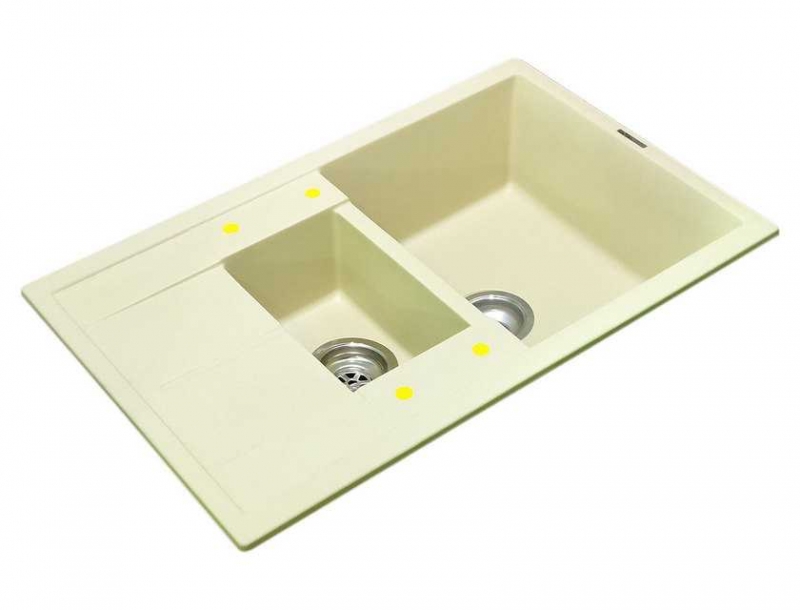 Полноразмерная гранитная мойка D.4 интересного дизайна с глубокими чашами и компактным крылом непременно станет настоящим украшением вашей кухни. Имеется 4 намеченных отверстия под смеситель, дистанционный слив, кран для питьевой воды и/или дозатор мыла. Прочный металлический крепеж, установленный на мойке, обеспечивает надежную её фиксацию в столешнице. Минимальная толщина стенок мойки - 8 мм. Мойка укомплектована сливной арматурой.