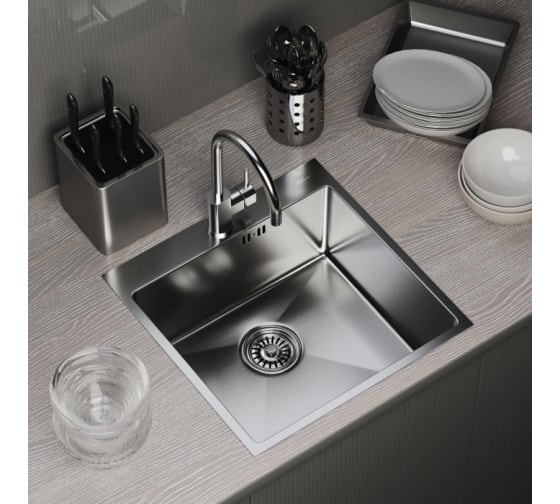Настольная мойка MIXLINE PRO 50x50, 3 мм, выпуск 3 1/2, 20 см, с сифоном, сатин 547229 дополнительные характеристики:
