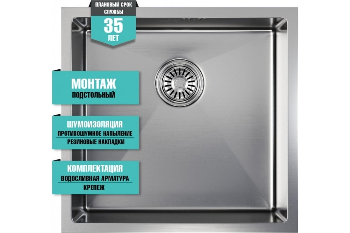 Мойка для подстольного монтажа MIXLINE PRO 45x42х20 см, толщина 3 мм, выпуск 3 1/2, с сифоном, сатин 548564 выполнена в классическом стиле прямоугольной формы, что позволяет удачно вписать модель в современный кухонный интерьер.