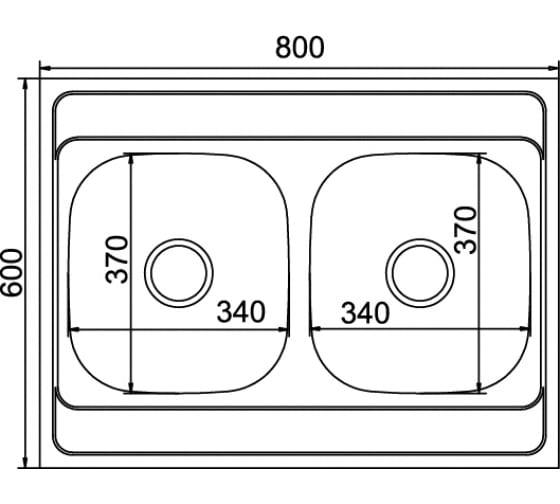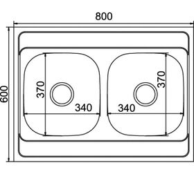 Технические характеристики MIXLINE 60х80х18 см, 0.6, 2 чаши, выпуск 3 1/2, с сифоном