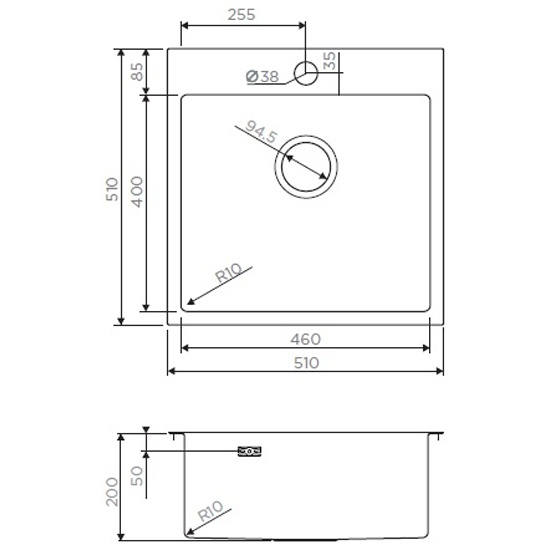 - Глубина мойки:51 см