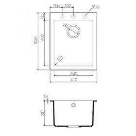 Размеры мойки 410 x 500 мм.