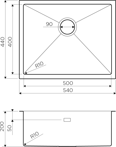 Глубина чаши, мм: 200