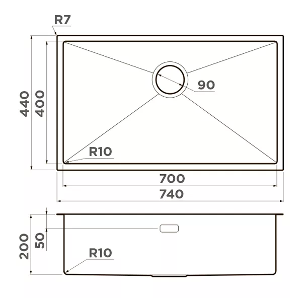 Глубина чаши, мм: 200