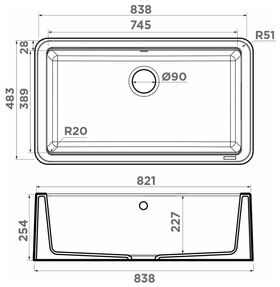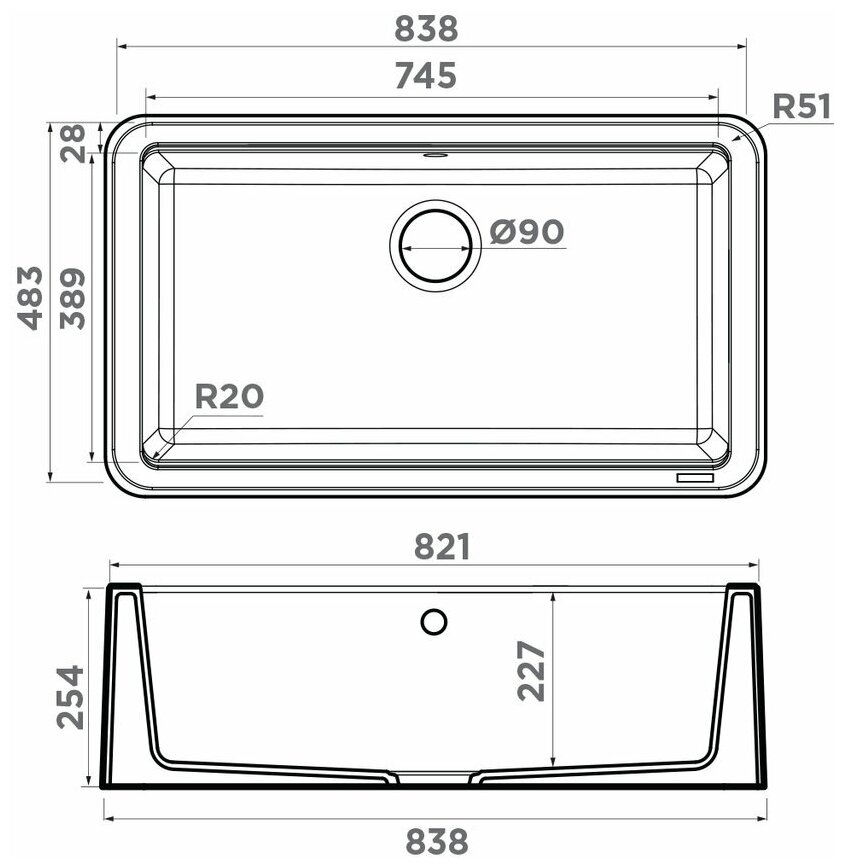 Габариты мойки: 83,8x48,3x25,4 см