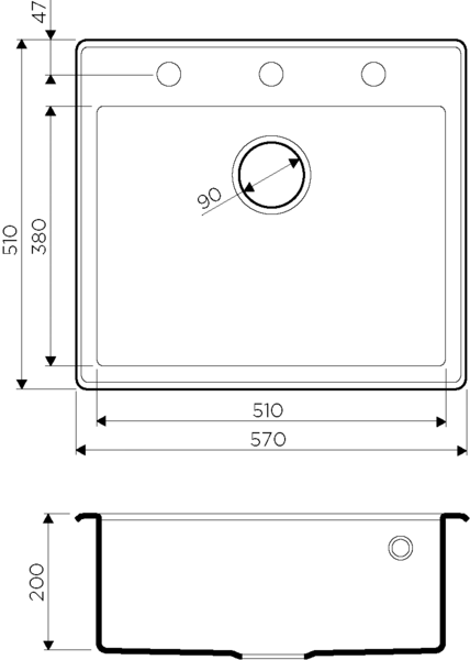 Глубина чаши, мм: 200