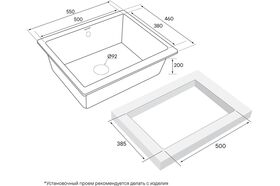 Технические характеристики Paulmark GERA графит, 555х460, подстольный монтаж