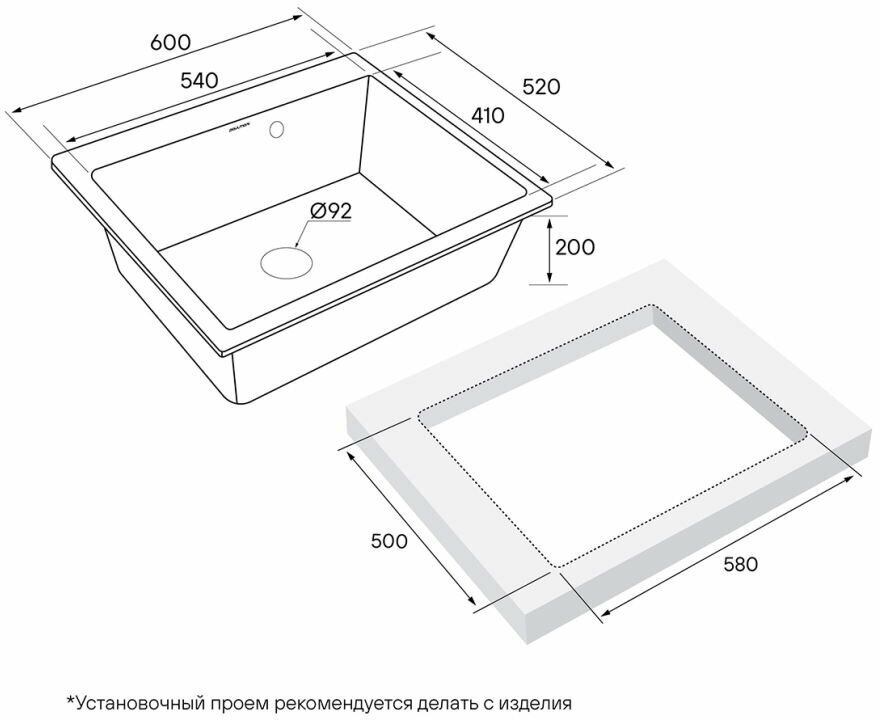 Размер выреза, мм