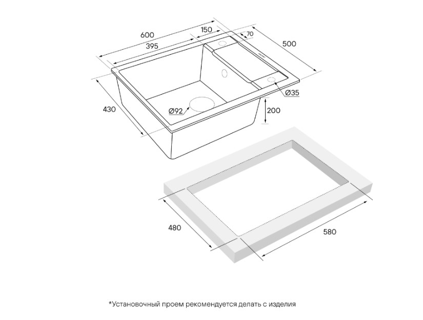 Размер выреза (ДхШ) 580 х 480