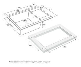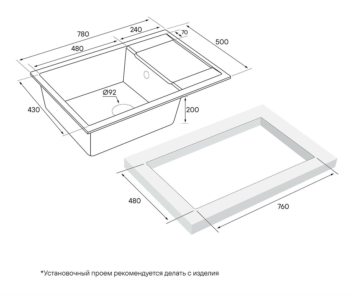 Размер выреза (ДхШ) 760 х 480 мм