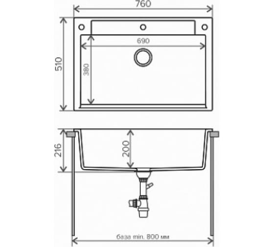 Кухонная мойка Polygran ARGO-760 (№16 Черный) 575882 представлена в современном стиле, отлично впишется в любой интерьер кухни.