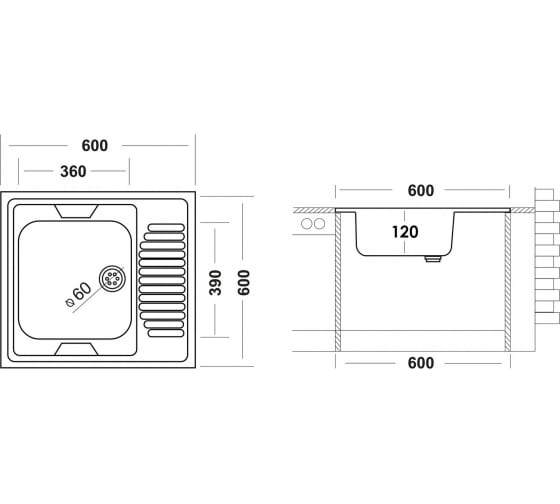 Мойка Ukinox ECO 600.600 L российского производства, изготовлена из нержавеющей стали AISI 430 толщиной 0,4 мм. Чаша слева.
