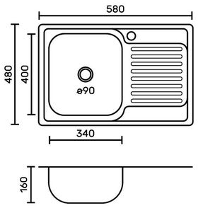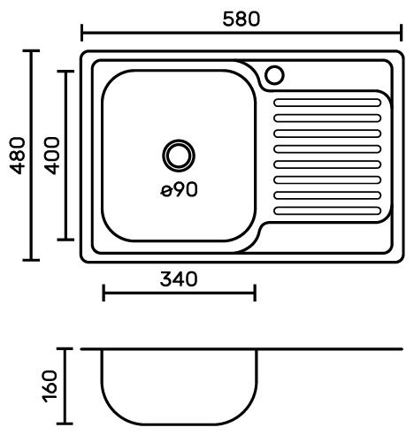 Габаритные размеры: ширина 580 мм, длина 480 мм, глубина 160 мм, толщина стали 0,6 мм.