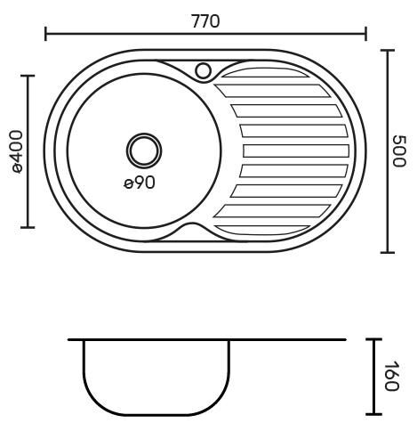 Габаритные размеры: ширина 770 мм, длина 500 мм, глубина 160 мм, толщина стали 0,6 мм.