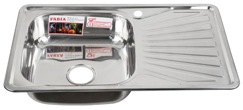 Врезная мойка FABIA из нержавеющей стали толщиной 0,6 мм – отличный вариант для кухни, она прослужит многие годы. Классическая форма и хромированный цвет гармонично впишутся в любой интерьер и никогда не выйдут из моды. Оптимальный размер 78 х 48 см с площадкой для посуды и глубина 160 мм позволяет свободно помыть посуду, без страха её разбить. Мойка врезается в столешницу. Специальное дополнительное антишумовое покрытие, нанесенное на обратную сторону чаш, разработано для снижения шума воды в мойке. Конструкция краев мойки, крепления и специальная уплотнительная прокладка обеспечивает максимально плотное прилегание к столешнице и защищает от протекания.Практичная площадка, расположенная по центру, даёт возможность вмонтировать любую понравившуюся модель смесителя. В комплекте сифон с большой горловиной с переливом, крепёж. Вес - 3,900 кг, объём -0 ,01958 м3