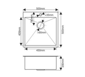 Врезная мойка из нержавеющей стали FABIA Profi 50х50 графит, толщина 3 мм, с сифоном и коландером 50503G дополнительные характеристики: