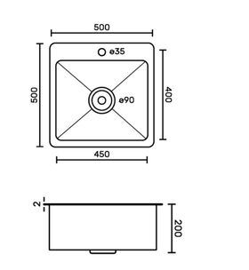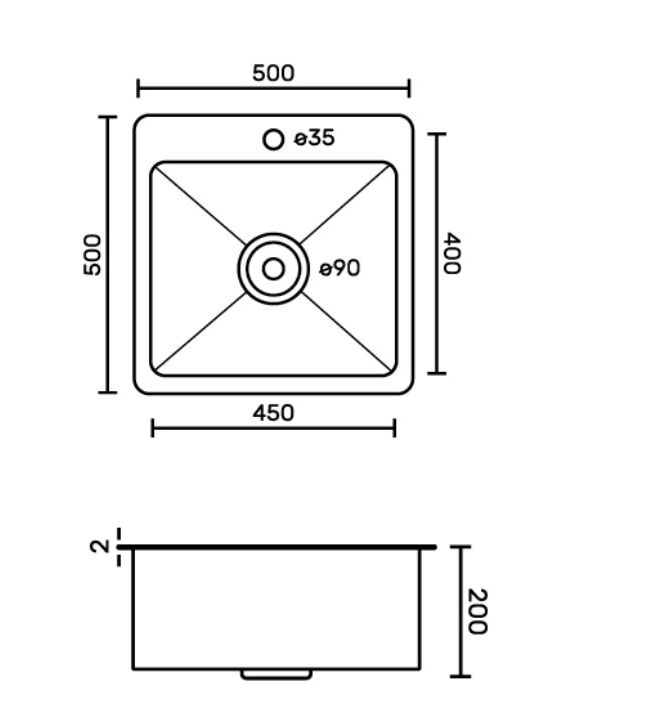 Габаритные размеры: ширина 500 мм, длина 500 мм, глубина 200 мм, толщина основания 2,0 мм,