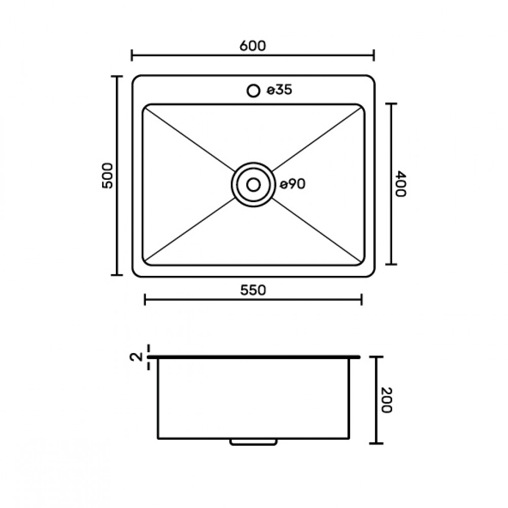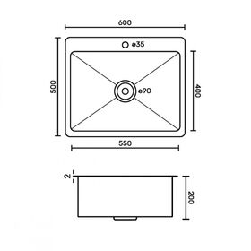 Мойка врезная, матовая, большой сифон с переливом. Сифон с углубленной горловиной, мусоросборником и крышкой. Врезная кухонная мойка произведена из премиальной нержавеющей стали AISI 201, обладает повышенной прочностью. Особенность мойки заключается в конструкции ее дна, имеющего небольшой уклон. Благодаря такой особенности, вода быстрее уходит в слив, не застаивается, что способствует поддержанию гигиеничности в чаше. Скругленные внутренние углы облегчают уход за мойкой, препятствуют скоплению частичек грязи.Тихой в использовании мойку делает шумоизолирующее покрытие и накладки с обратной стороны мойки. В комплект входит сифон, мойка. Габаритные размеры: ширина 600 мм, длина 500 мм, глубина 200 мм, толщина основания 2,0 мм, чаша 0,6 мм.