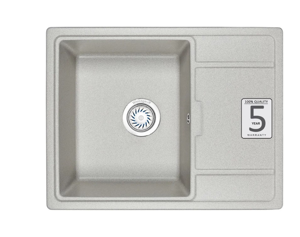 Кухонная мойка Weissgauff с чашей прямоугольной формы и особым эргономичным крылом, выполненная из высококачественного искусственного камня и предназначенная для накладной установки в кухонный шкаф шириной 45 см - это по-настоящему вместительная чаша при лаконичном дизайне!