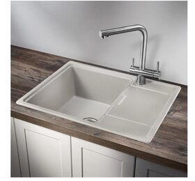 Искусственный камень высокого качества является поистине инновационным материалом в производстве кухонных моек! Он сочетает в себе такие неоспоримые преимущества как повышенная влагостойкость и термостойкость, возможность придать мойке при изготовлении практичный и функциональный дизайн, увеличенное сопротивление внешнему износу, снижение уровня шума при падении струи воды, высокая степень электроизоляции, безусловная гигиеничность и простота в уходе, а также сравнительно малый вес при высокой прочности!