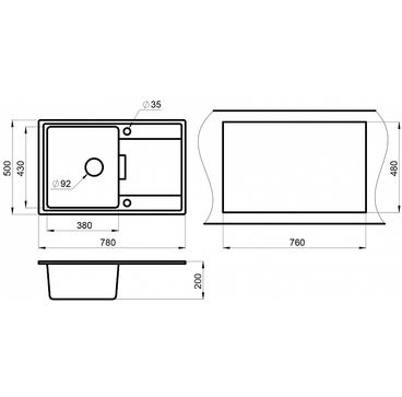 Кухонная мойка Weissgauff с чашей прямоугольной формы и особым эргономичным крылом, выполненная из высококачественного искусственного камня и предназначенная для накладной установки в кухонный шкаф шириной 50 см - это по-настоящему вместительная чаша при лаконичном дизайне!