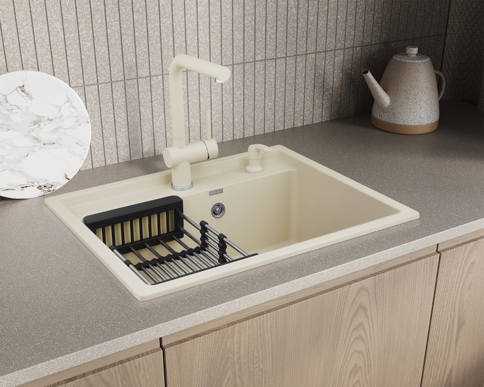 Комплектация: Мойка, сифон серии "Элит", гофротруба, коландер, дозатор, технический паспорт и гарантийный талон