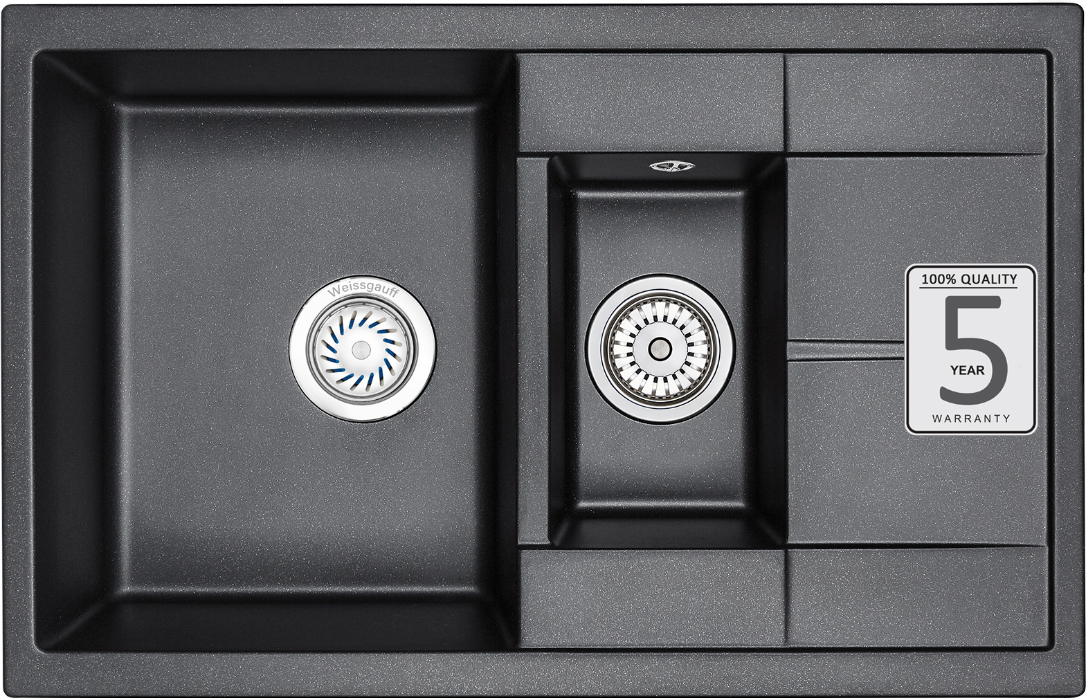 Кухонная мойка Weissgauff с двумя чашами прямоугольной формы и особым эргономичным крылом, выполненная из высококачественного искусственного камня и предназначенная для накладной установки в кухонный шкаф шириной 60 см - это максимальная функциональность и великолепный дизайн!