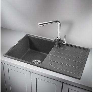 Кухонная мойка Weissgauff с чашей прямоугольной формы и особым эргономичным крылом, выполненная из высококачественного искусственного камня и предназначенная для накладной установки в кухонный шкаф шириной 60 см - это по-настоящему вместительная чаша при лаконичном дизайне!