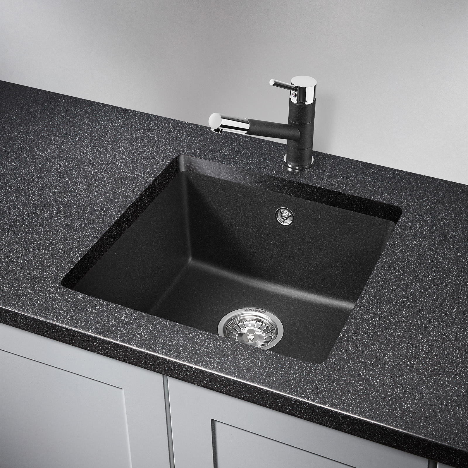 Кухонная мойка Weissgauff с чашей прямоугольной формы, выполненная из высококачественного искусственного камня и предназначенная для установки под столешницу в кухонный шкаф шириной 50 см - это настоящее сочетание совершенства стиля и функциональности дизайна!
