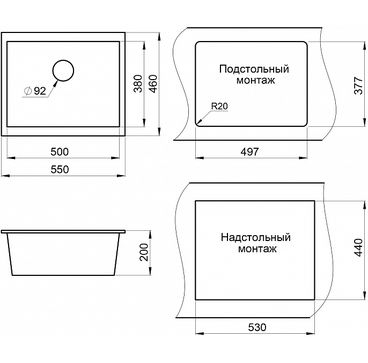 Прямоугольная форма чаши - позволит добиться максимальной вместительности мойки в сочетании с лаконичностью прямолинейных форм!