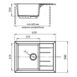 Мойка для кухни GranFest Quadro Q-650L-Black мрамор 1 чаша с крылом/черный