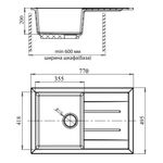 Мойка для кухни GranFest Quadro Q-780L-Black мрамор 1 чаша с крылом/черный