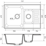 Мойка для кухни GranFest Quarz 78-Black кварц 1 чаша с крылом/черный