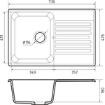 Мойка для кухни GranFest Rondo R-480-Black мрамор 1 чаша без крыла/черный