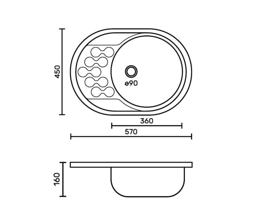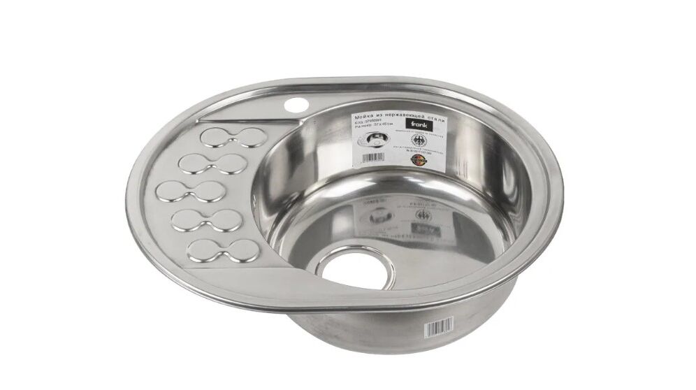 Врезная мойка FRANK из нержавеющей стали толщиной 0,8 мм – отличный вариант для кухни , она прослужит многие годы. Классическая форма и хромированный цвет гармонично впишутся в любой интерьер и никогда не выйдут из моды. Оптимальный размер 57 х 45 см с площадкой для посуды и глубина 180 мм позволяет свободно помыть посуду, без страха её разбить. Мойка врезается в столешницу . Специальное дополнительное антишумовое покрытие , нанесенное на обратную сторону чаш, разработано для снижения шума воды в мойке.Конструкция краев мойки, крепления и специальная уплотнительная прокладка обеспечивает максимально плотное прилегание к столешнице и защищает от протекания.Практичная площадка, расположенная по центру , даёт возможность вмонтировать любую понравившуюся модель смесителя. В комплекте сифон с большой горловиной с переливом , крепёж