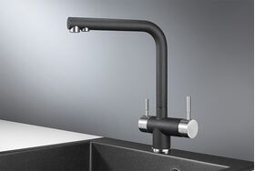 Высокий излив смесителя позволяет мыть посуду любого размера, а кран для питьевой воды с фильтрацией обеспечивает доступ к чистой воде без примесей.